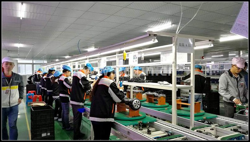 平衡车生产线,平衡车输送线,平衡车流水线组装线主要采用环形倍速链组装线,运行模式是左右循环,有效的利用空间,工装板采用双层,上层圆形可旋转。