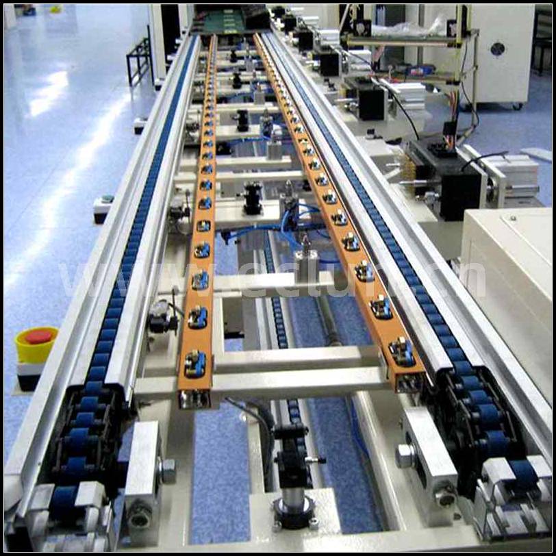 倍速链输送线。倍速链输送线要比以上五种运送流水线复杂一些,自动化程度更高,使用也比较普遍。