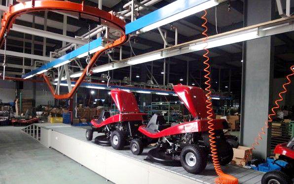 5、悬挂输送线:悬挂输送线就是悬挂链输送线,以悬挂的方式完成产品的输送,常与链板输送线一起应用于汽车制造等行业。