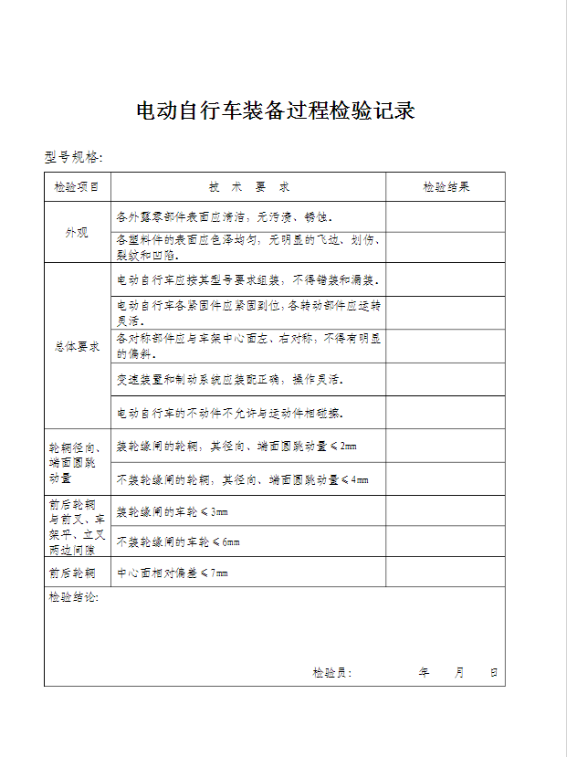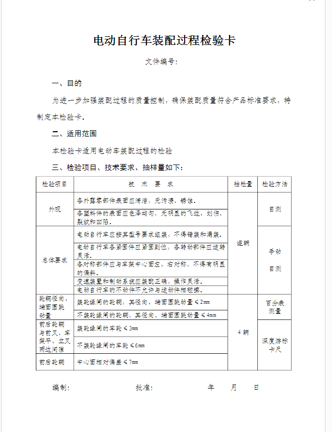 电动自行车生产线,电动自行车流水线整车装配工艺流程卡