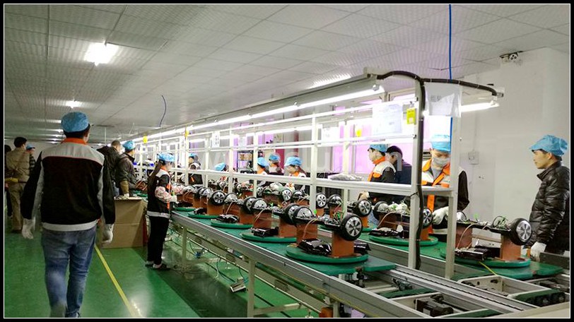 平衡车生产线,平衡车输送线,平衡车流水线组装线主要采用环形倍速链组装线,运行模式是左右循环,有效的利用空间,工装板采用双层,上层圆形可旋转。